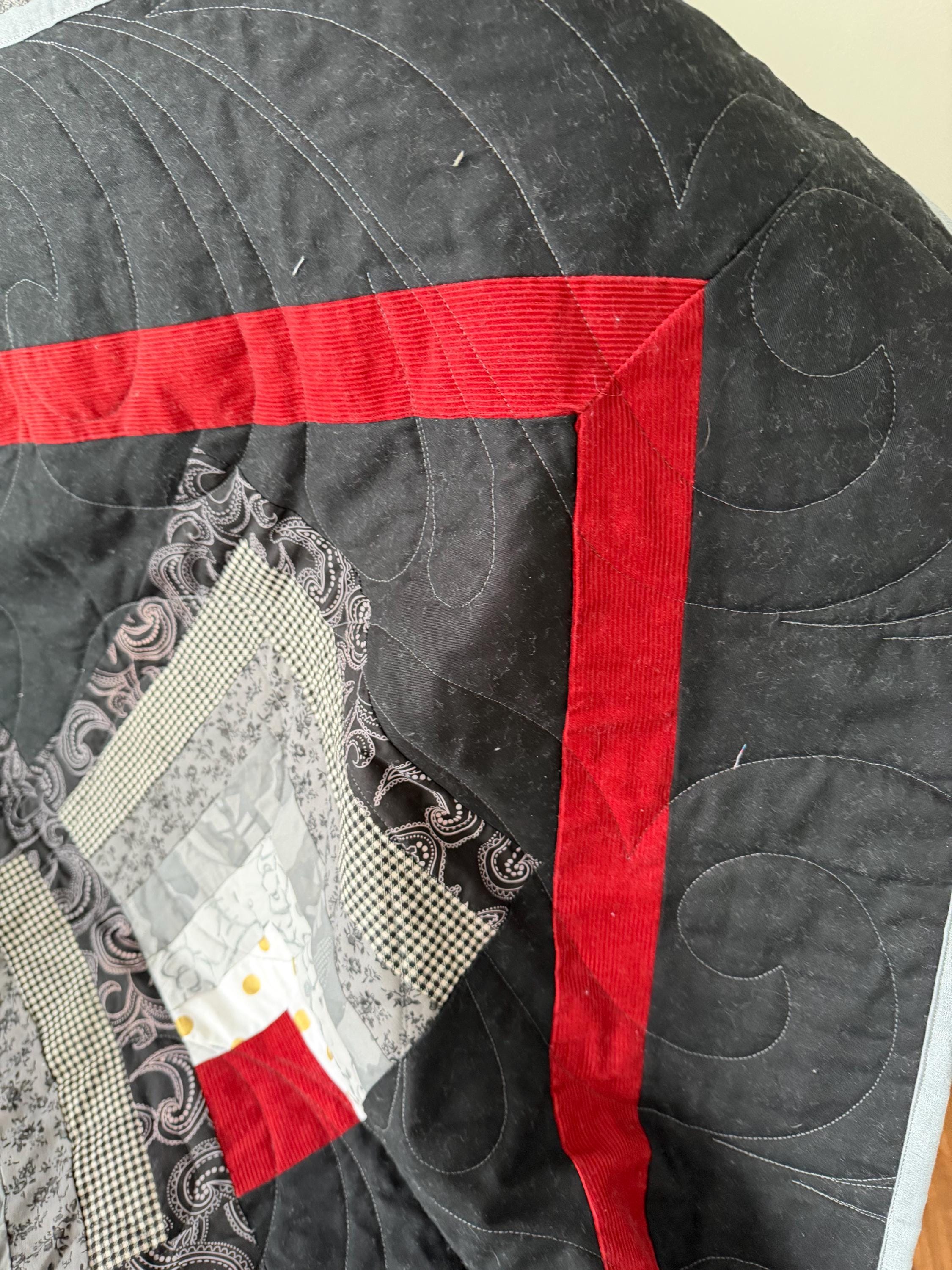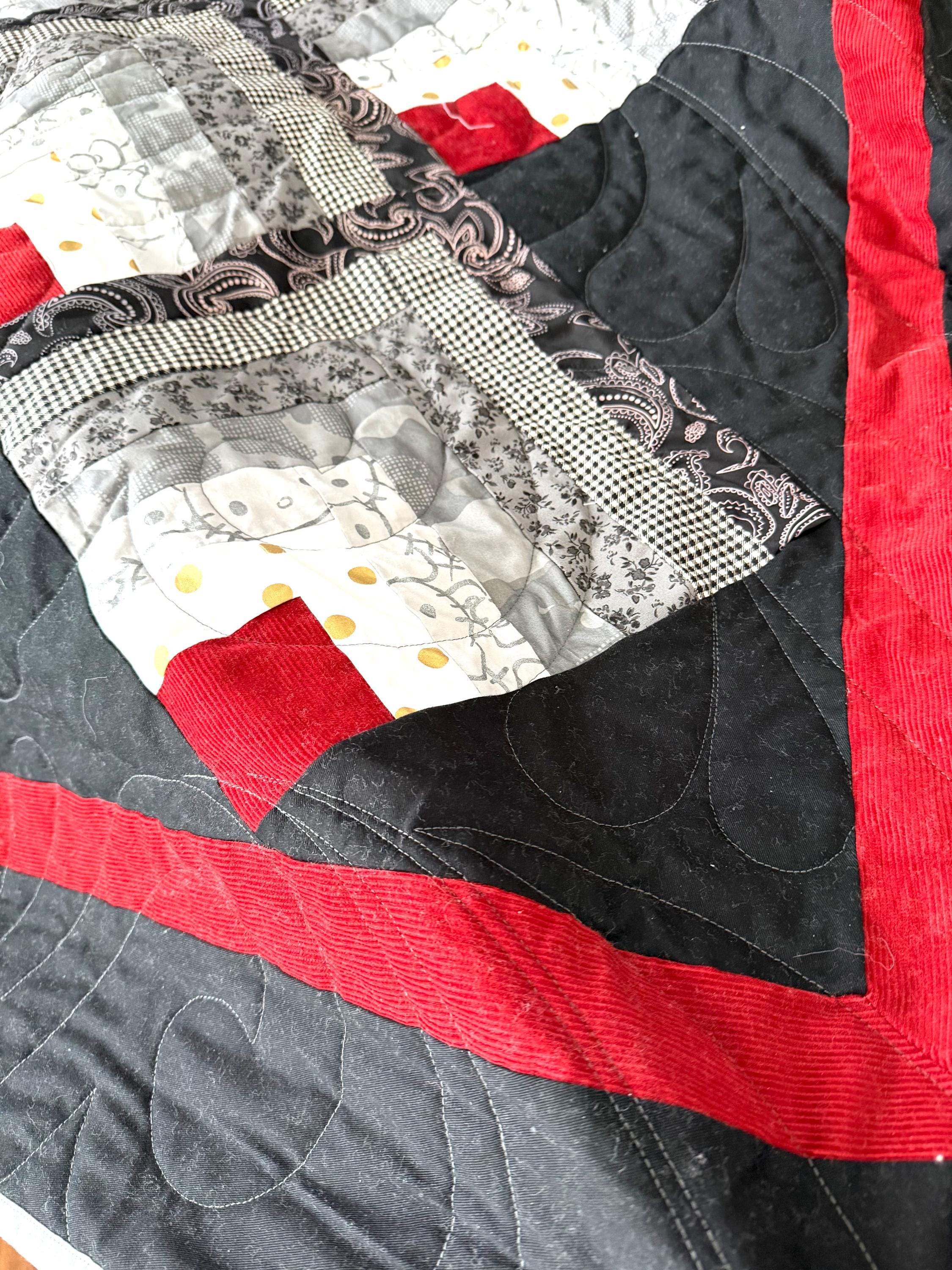 This is one of a kind quilt you’ll not find one anywhere else red Fabric is corduroy